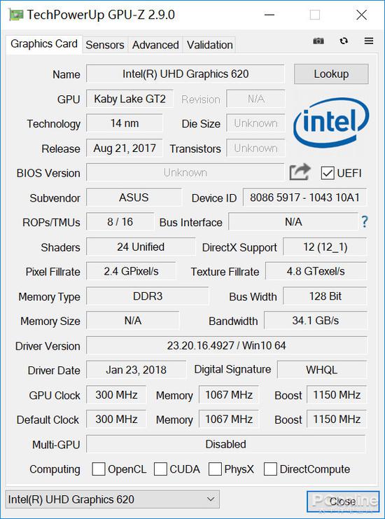 華碩榮耀X的圖形處理能力主要依賴于Intel Core-i7 8550U處理器上的集成顯卡,這款處理器的型號為Intel UHD Graphics 620。