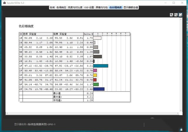 接下來是屏幕方面,前面說到GP63搭載的是一塊1080P、120Hz的TN屏,可能有的同學一看到TN屏就會眉頭一皺,但是事實究竟如何?我們用專業較色軟件進行了色彩校準,結果如下: