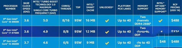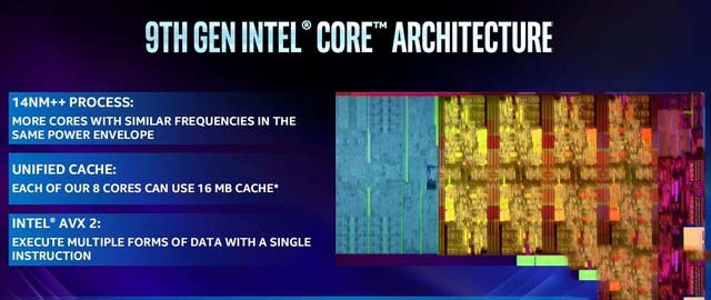 英特爾第九代酷睿依舊采用14nm++制程工藝,不過與以往不同的是,本次九代酷睿每一個核心都能夠訪問使用三級緩存。如酷睿i9 9900K的8個核心均可以訪問使用16MB智能緩存,使得CPU緩存延遲大大降低,性能得到提升。