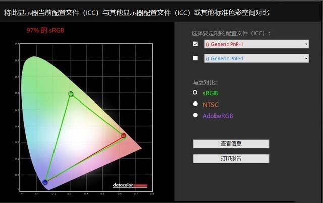 通過Spyder我們了解顯示屏的色域覆蓋范圍,下面來看看測試結果: