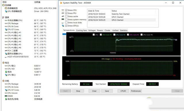 炫龍耀9000II搭載了英特爾酷睿i7 8750H處理器,通過AIDA 64烤機測試可以看到,CPU穩定運行功耗在35W,核心溫度能夠控制在86℃左右,已經做的相當不錯了。