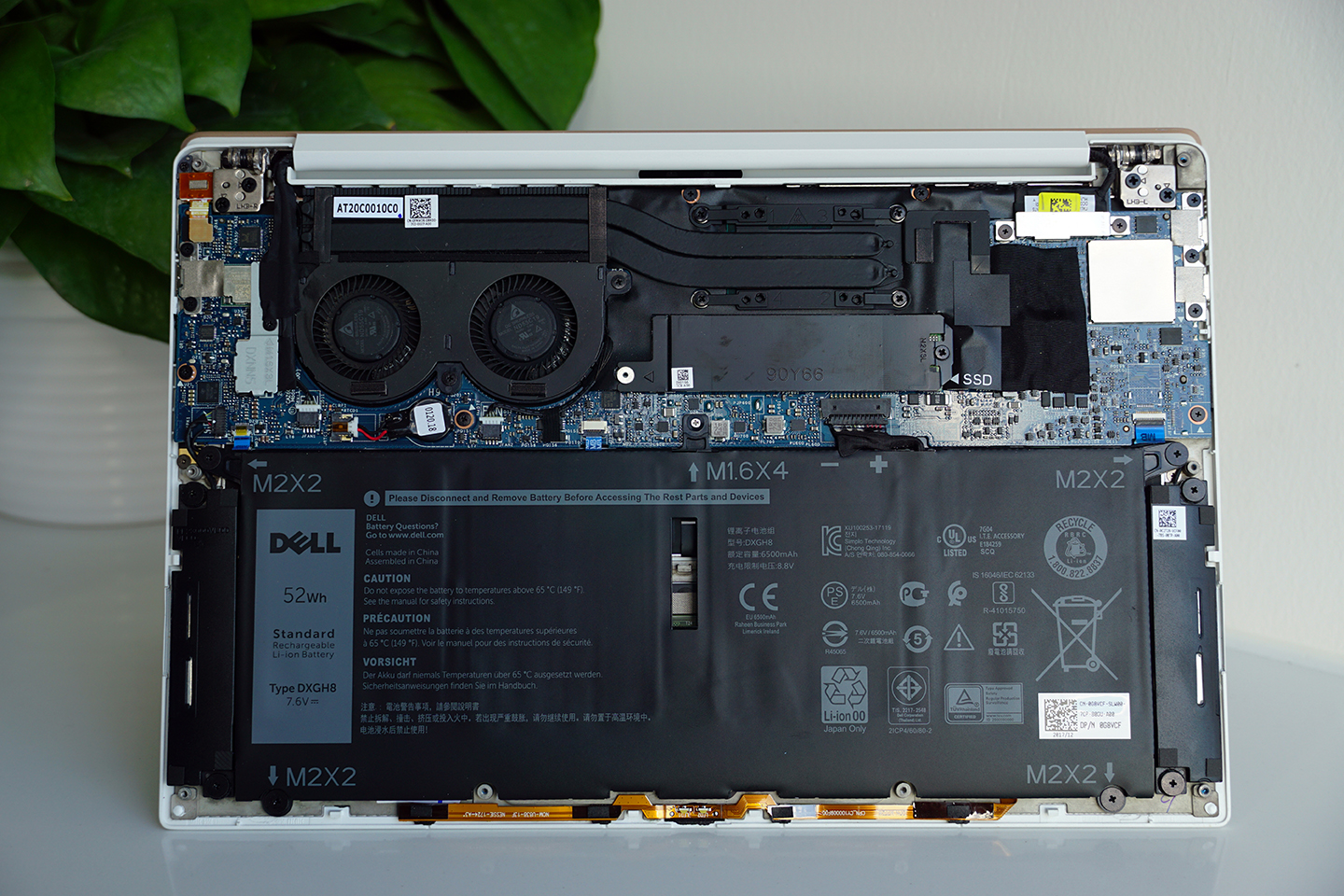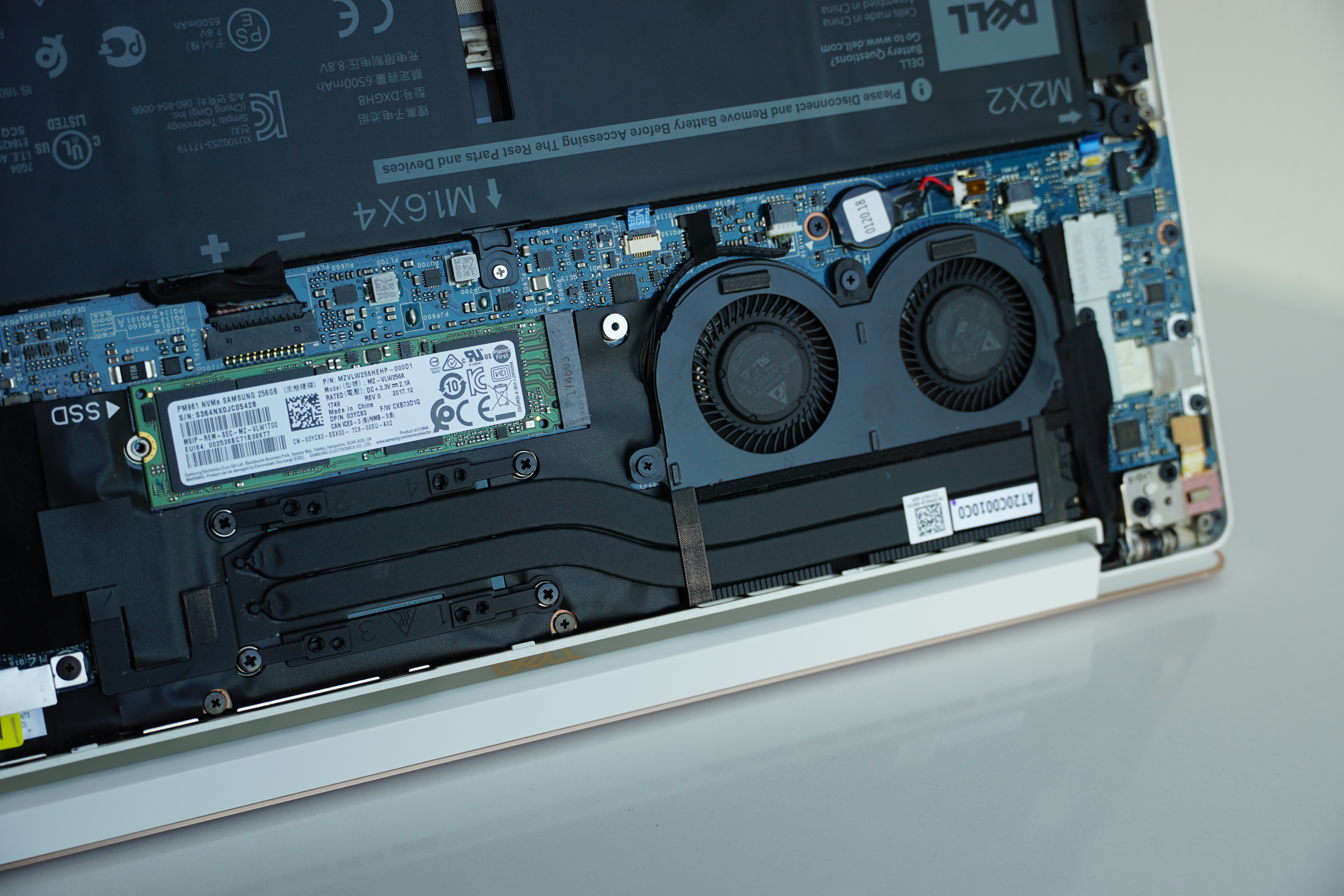 我們拆下全新XPS 13的底蓋后可以一覽機(jī)身內(nèi)的硬件全貌,作為輕薄本產(chǎn)品,XPS 13的多數(shù)硬件采用了板載,只有機(jī)身上這塊固態(tài)硬盤可以進(jìn)行更換升級(jí)操作,不過(guò)鑒于這是一款最薄處僅7.8mm的輕薄本產(chǎn)品,板載大多數(shù)硬件這種情況是可以理解的。