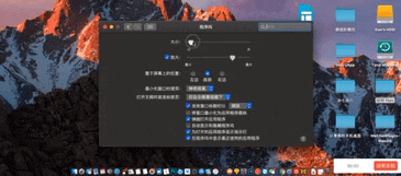 如果你覺得桌面上的內(nèi)容比較重要,那就把圖標(biāo)調(diào)小,同時(shí)開啟「放大」,并把它的進(jìn)度條向右調(diào),這樣即便圖標(biāo)小,也可以在你鼠標(biāo)移動(dòng)過去時(shí)自動(dòng)放大,不至于看不清圖標(biāo)。反之亦可。