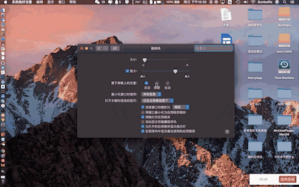 在「偏好設(shè)置 - 程序塢」中除了調(diào)整圖標(biāo)大小之外,還能把程序塢的位置放在屏幕左或右側(cè),亦或開啟自動(dòng)顯示或隱藏,最大化利用屏幕空間。