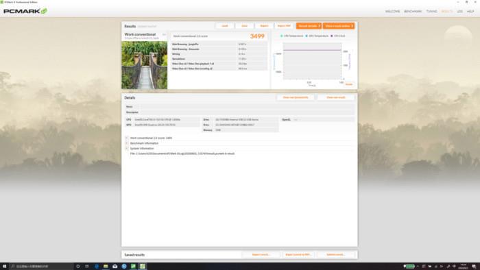 在PCMark work模式綜合測(cè)試中ThinkPad X1 Yoga 2020的綜合成績(jī)達(dá)到了3499。