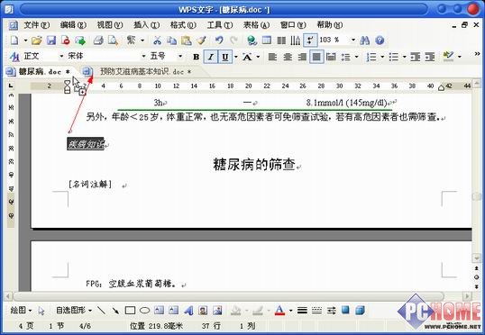 另外,同樣的內容可能出現在兩個文檔中,比如小標題等,這里只要在樣本文檔中選中需要“克隆”的文字,并將其拖曳到文檔標簽上,WPS 2007會自動切換到目標文檔,最后松開鼠標左鍵即可完成連文字帶格式的復制(如圖3),非常方便。