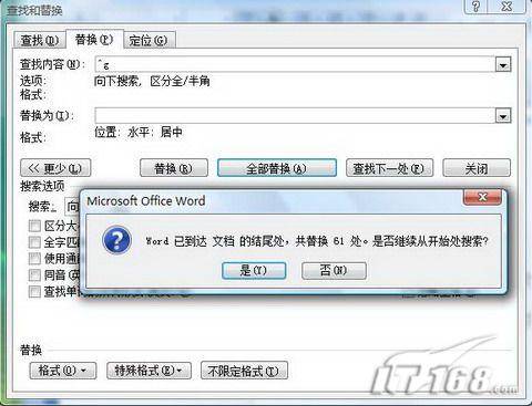 對于嵌入式的圖片,無論是Word 2007或是Word 2003,都可以直接打開“查找和替換”對話框,先將“查找內容”設置為“^g”,然后將光標定位到“替換”的文本框中,首先單擊“更多”按鈕,此時可以看到搜索選項、格式、特殊格式等內容,從格式的下拉菜單中選擇“圖文框”,將水平位置設置為居中,然后返回“查找和替換”對話框,單擊“全部替換”按鈕后即可生效(見圖2)。