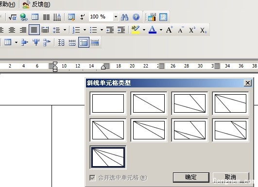 將光標移指針選擇需要插入斜線表頭位置,在選擇斜線表格的樣式(圖2),點擊確定,一個已經(jīng)插入斜線的表格就做好了(圖3)。