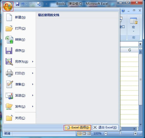 1、打開Excel2007,點擊左上角的MS Office按鈕,選擇“Excel選項”。