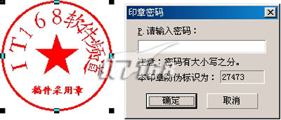 當要查看印章的真偽或對印章進行修改、復制時,可以右擊印章,出現“印章密碼”對話框,要求輸入正確的密碼,同時顯示印章的數字防偽標識(在此可以驗證印章的真偽)。