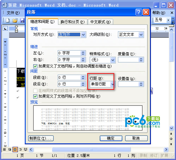 單倍行距:每行中最大字體的高度加很小的額外間距。單倍行距是 Word2003 的默認行距。