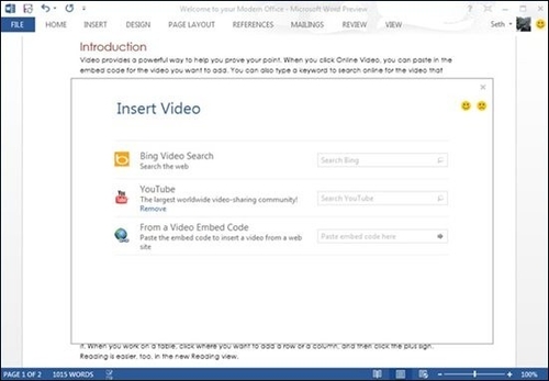 Word2013支持直接插入播放網(wǎng)絡(luò)視頻