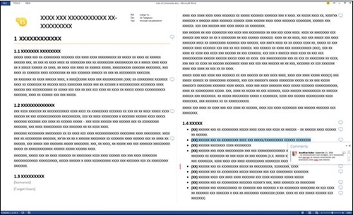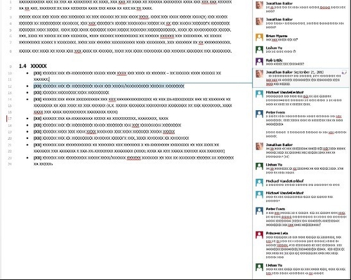 用戶在Word的閱讀模式下瀏覽注釋,新版Word將不會在右邊顯示相關的注釋內容,而是最大限度的保證閱讀的連貫性,當鼠標移到注釋內容上就會以浮動窗體的形式顯示出來,可追蹤整篇文檔的修改注釋位置,而且在跳出的浮動窗體上通過留言和其他文檔分享者進行溝通交流。