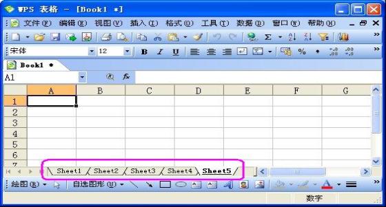 圖1-1-2中,下部的紫色區域為頁標簽,這是64頁表格中的3頁,其它的可以通過菜單 插入 --工作表 來實現。如圖1-3。