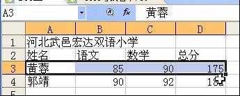 如圖2-1-3所示,如果要選擇A3到D3,即A3:D3,那么將鼠標(biāo)在A3格中點擊一下,然后按下鼠標(biāo)左鍵,向D3格中移動,那么A3:D3將被選中,效果如圖2-2-1所示。