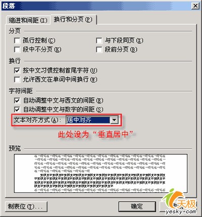 首先選中公式所在段落,從菜單中選擇“格式-段落”,在“換行與分頁”選項卡的“文本對齊方式”選項中選擇“居中對齊”(圖2),按“確定”按鈕退出。