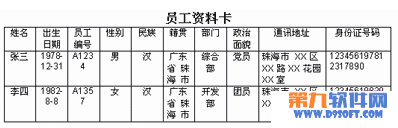 步驟1 首先啟動WPS文字,將多個資料卡合并成一個WPS文檔,并將除表一以外各表的主標題--“員工資料卡”刪除,如圖 3所示。