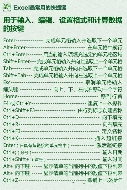3、Excel用于輸入、編輯、設置格式和計算數據的按鍵快捷鍵