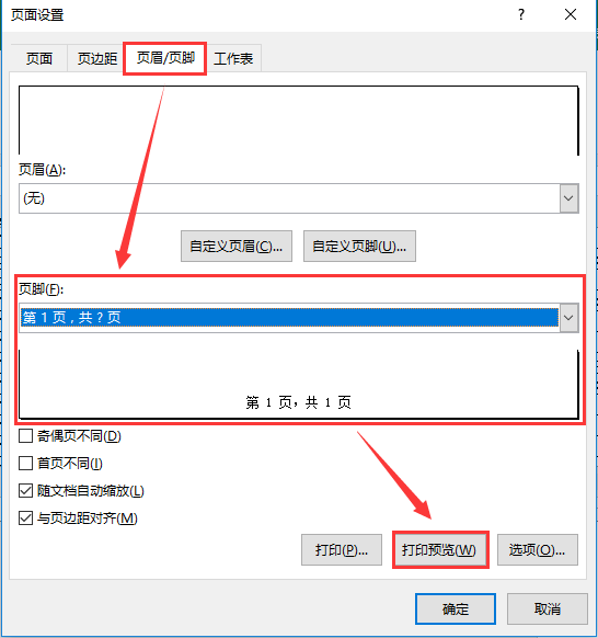 解決方法:【頁面布局】——【頁眉/頁腳】——【頁腳】——【打印預覽】