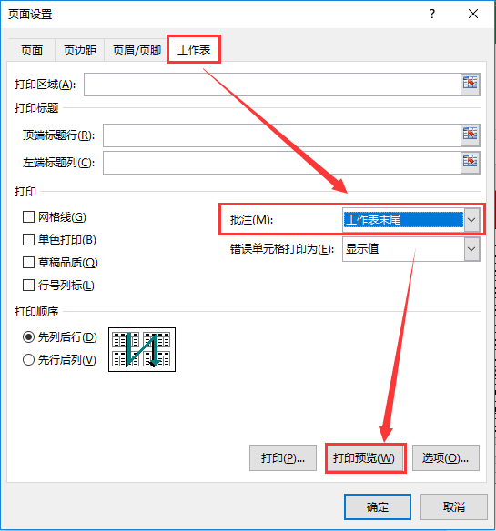 解決方法:【頁面布局】——【工作表】——【批注】——【工作表末尾】
