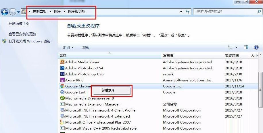 6、接下來我們說下第一步暫時不動的Program Files或者Program Files (x86),這兩個里是程序的安裝路徑,如果要刪除里面的某個程序的文件,那么就需要用到卸載程序的功能了