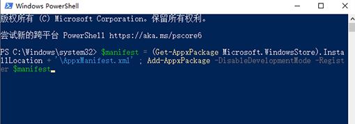 $manifest = (Get-AppxPackage Microsoft.WindowsStore).InstallLocation + '\AppxManifest.xml' ; Add-AppxPackage -DisableDevelopmentMode -Register $manifest