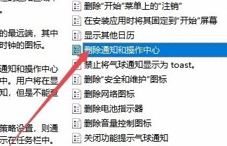 5.在右側(cè)窗口中找到“刪除通知和操作中心”設置項。