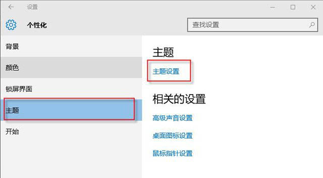 2、在個性化的界面中,我們點擊“主題”,再點擊“主題設置”,如下圖所示。