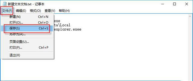 3、我們在記事本中,點擊“文件”,再點擊“保存”,保存剛剛的代碼。
