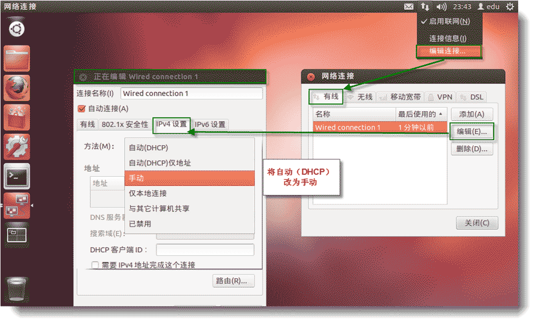 系統(tǒng)裝好后,源也設置好了(把以前默認的源注釋掉了,改成了幾個教育網(wǎng)的源,北交的源相對比較快),下來的任務就是更新系統(tǒng)和安裝所需的軟件,但是前提是必須可以上網(wǎng),因為實驗室用的都是固定IP,所以需要將Ubuntu設置為靜態(tài)IP。方法如下: