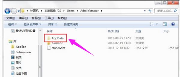 5.打開AppData文件夾(系統(tǒng)文件被隱藏,可能會(huì)看不見)