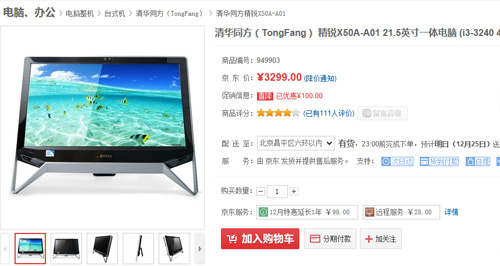 硬件配置上,這款清華同方精銳一體電腦配以Intel酷睿i3-3240處理器、4GB 內(nèi)存、500GB硬盤;內(nèi)嵌AMD HD8350獨(dú)立顯卡,擁有21.5英寸屏幕,DVD刻錄光驅(qū),預(yù)裝DOS系統(tǒng)。