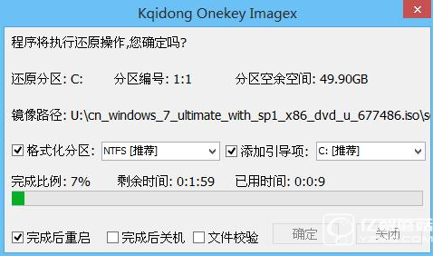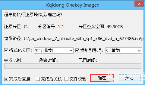 4、之后會彈出確認框,直接采用默認設置無需修改,點擊“確定”即可,此時裝機工具會將系統鏡像文件釋放還原到指定的磁盤分區當中,耐心等待此釋放過程結束;