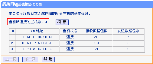 例如:在使用環(huán)境中,你確認(rèn)只有2個(gè)無線終端連接了無線網(wǎng)絡(luò),但無線主機(jī)狀態(tài)卻顯示當(dāng)前的主機(jī)數(shù)為3個(gè),那就說明你的無線網(wǎng)絡(luò)被蹭網(wǎng)了。