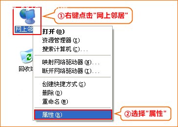 1.右鍵點擊桌面上的“網上鄰居”,選擇“屬性”: