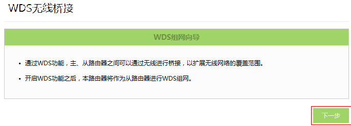點擊WDS無線橋接中的 下一步,開始設置,如下圖: