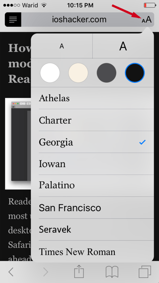 除了背景顏色之外,你還可以在這里選擇不同的字體或者顏色,iOS 9 全新的閱讀視圖模式為用戶提供了更多權(quán)限,那么現(xiàn)在你期待 iOS 9、或者是增強(qiáng)后的 Safari 的到來嗎?
