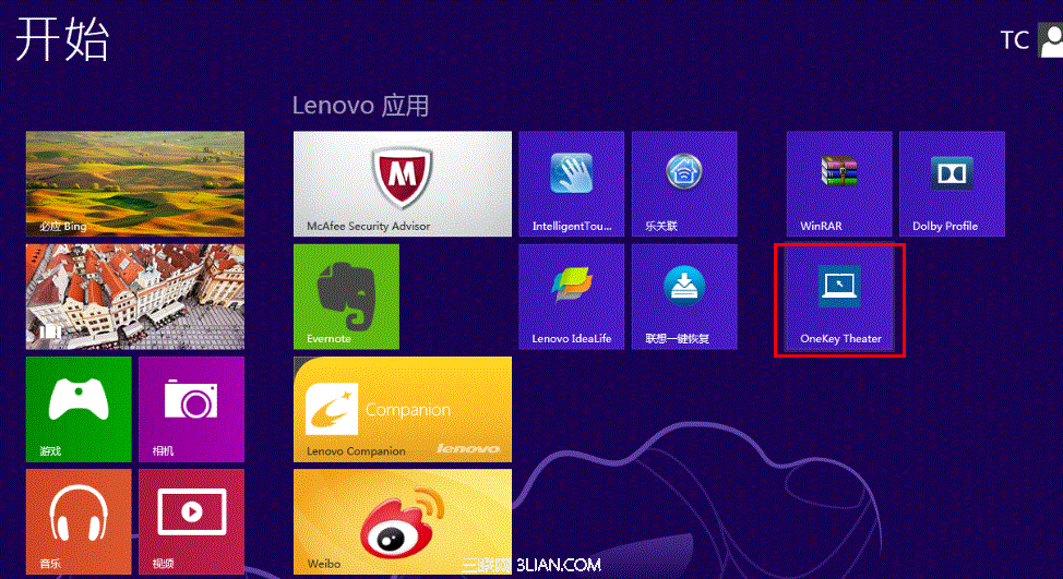 Metro開始菜單中點(diǎn)擊一下‘OneKey Theater’圖標(biāo)即可恢復(fù),如下圖: