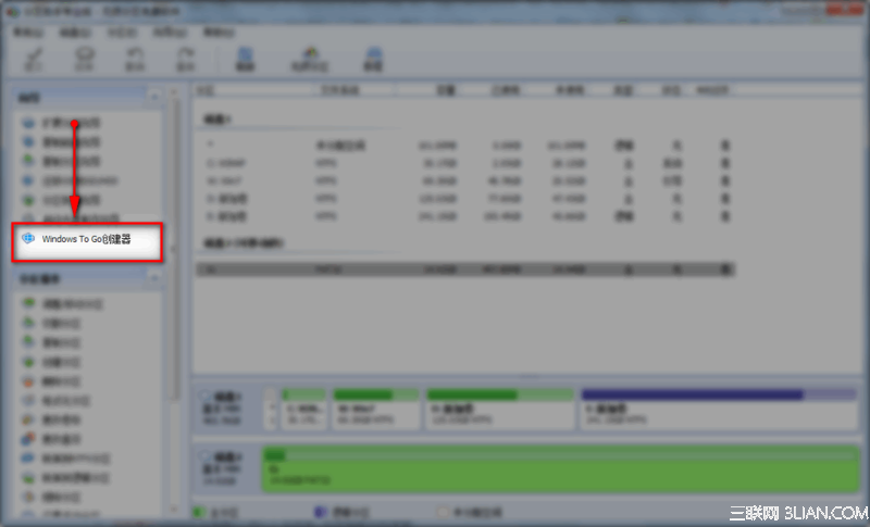 插入U盤至電腦,打開分區助手。找到下圖的“Windows To Go創建器”選項,單擊啟動。