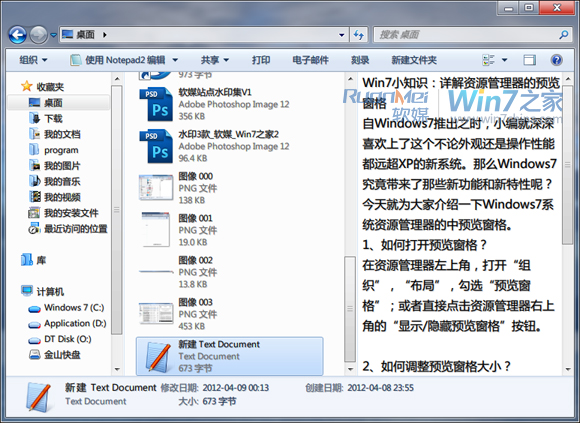 如何使用Windows 7資源管理器的預覽窗格 三聯教程