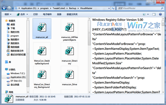 可供預覽類型2、reg注冊表文件,不可以進行右鍵操作。