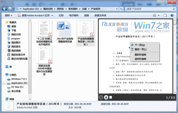 可供預覽類型9、pdf文檔預覽,小編安裝了Acrobat,當然免費的Reader也是可以實現預覽的。