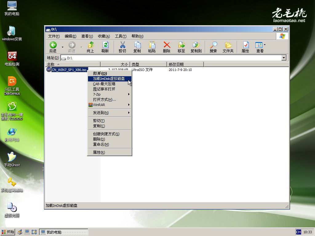 方法3、與方法2類似,直接在PE里利用虛擬光驅加載Win7的ISO安裝文件,然后利用NT6安裝工具等軟件進行安裝。