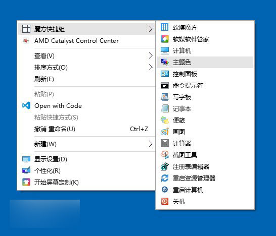 如果你覺得上面的打開方法太麻煩,還可以把這個設置添加到右鍵菜單。下載軟媒魔方(點此下載),打開“軟媒設置大師”—“右鍵菜單”—“右鍵菜單快捷組”,在這里添加右鍵菜單。如下圖所示,執行命令填寫Control Color即可。