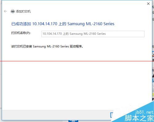 8、安裝完成后,在執行一次上面的步驟。我們我們看到,這次的就成功的添加上打印機了。在完成的時候,會有一個打印測試頁的按鈕,我們不要去點它,直接點擊“完成”即可。