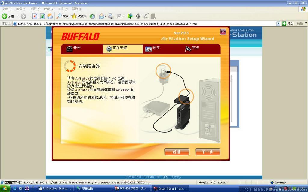 用另外一根網線(準備好網線)將BUFFLAO無線路由的LAN口與電腦的網口連接。