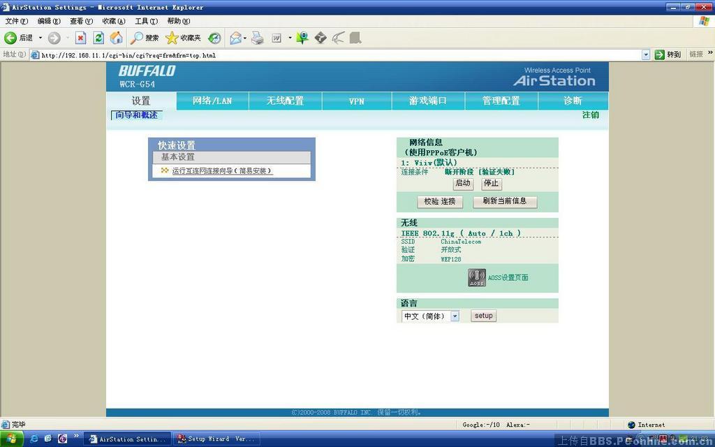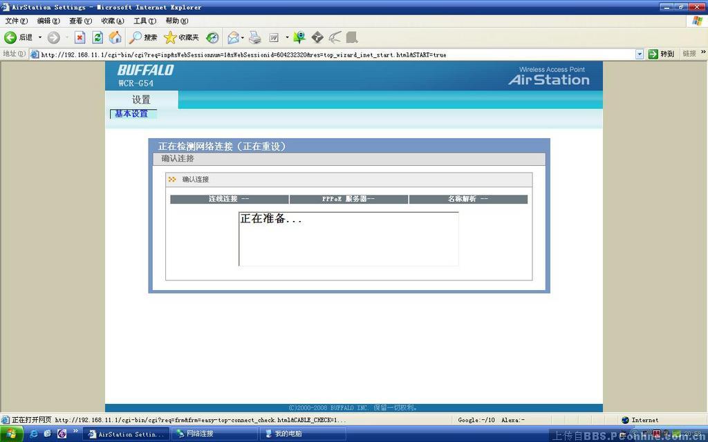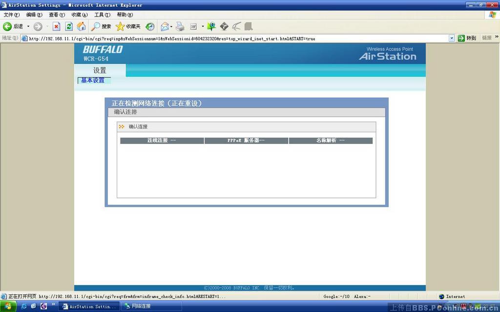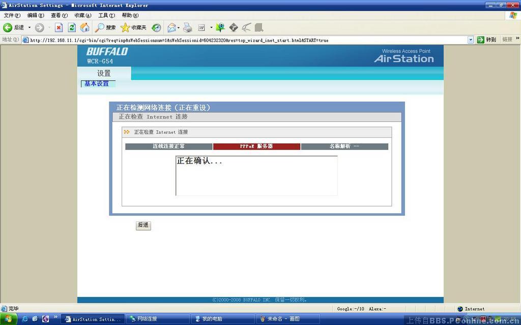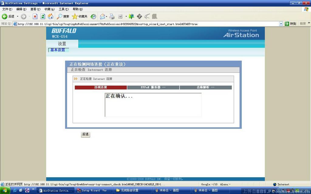 基本設置中的運行互聯網連接向導可以檢測無線路由是否設置成功,點擊后開始檢測與互聯網是否連接: