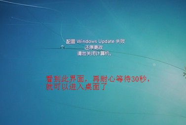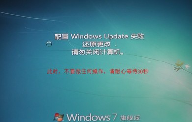 2、大約30秒后,系統(tǒng)會提示“配置Windows Update失敗,還原更改,請勿關閉計算機”,此時您不需要做任何操作,耐心等待。(如下圖)