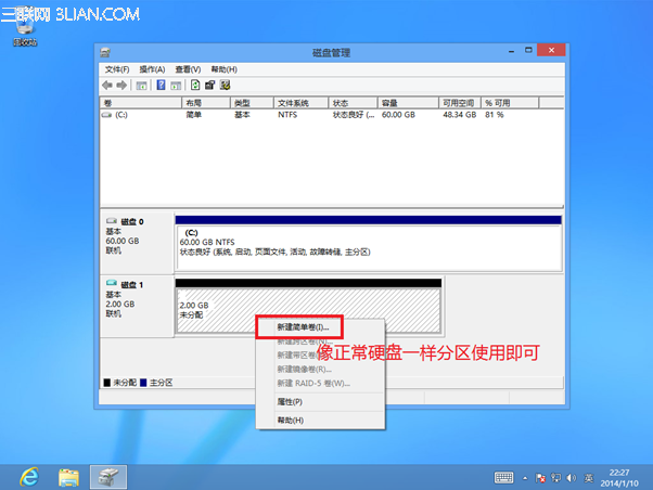 當磁盤初始化完畢后,我們就可以像平常的硬盤一樣進行分區操作,然后使用即可。