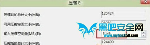 4、填入想要劃分的分區大小。點擊壓縮選項。
